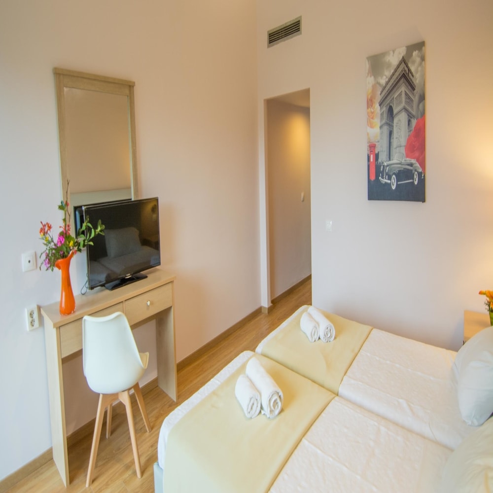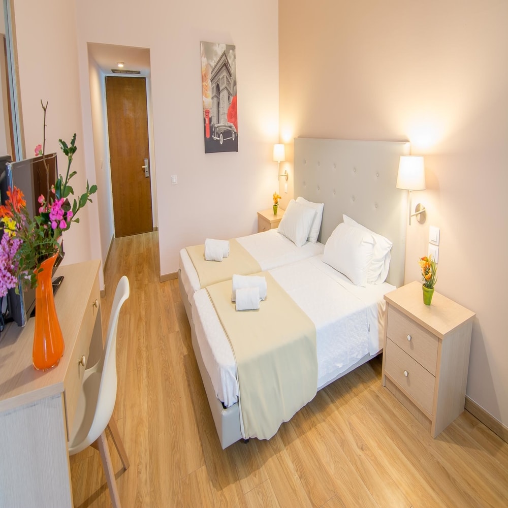 Отель Alexandros — это четырехэтажное здание, состоящее из 95 комфортабельных и элегантных номеров со всеми необходимыми удобствами для любого тех кто путешествует по делам или для удовольствия.