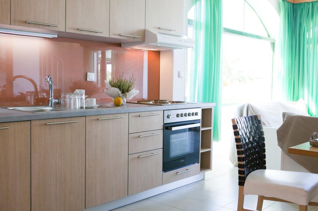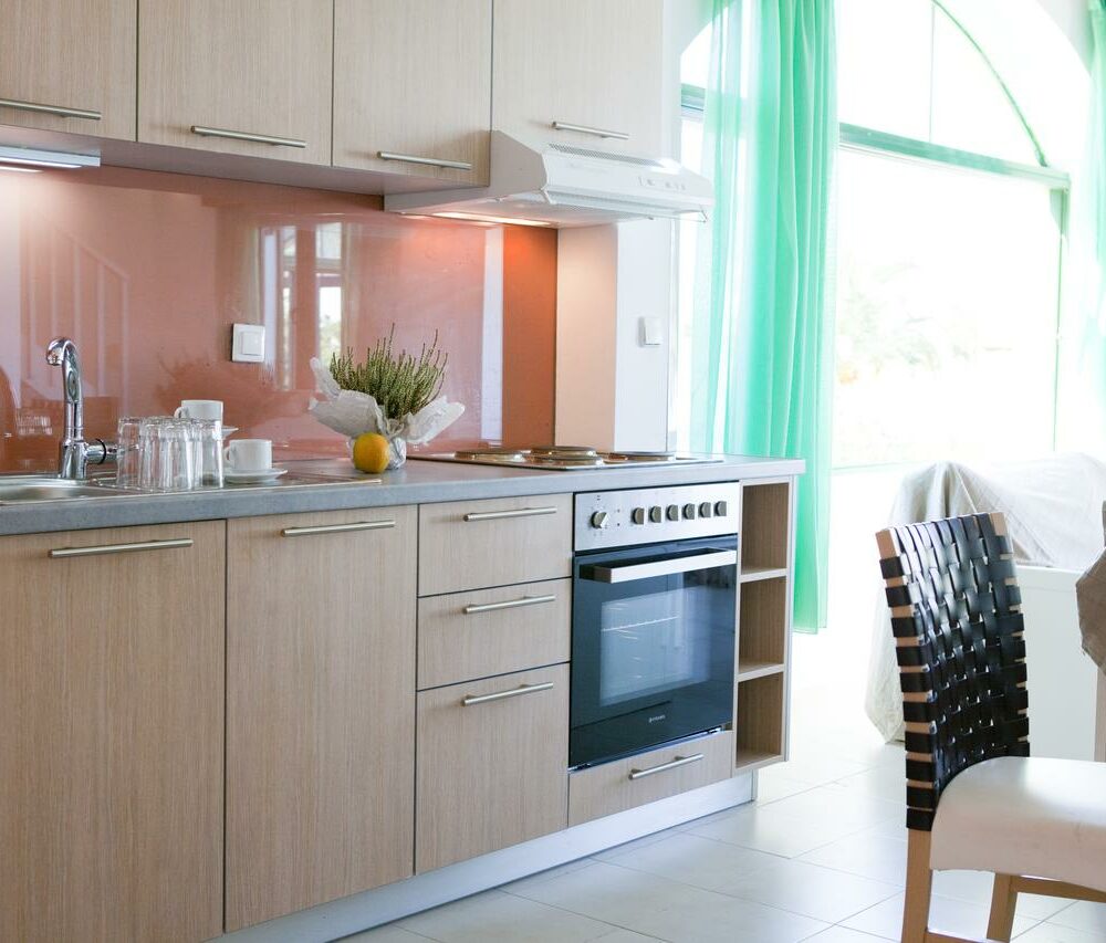 Апартаменты с одной спальней (2-4 человека) (≈45 м2). Одна спальня с двумя односпальными кроватями, мини-кухня, совмещенная с гостиной, два дивана, которые можно превратить в кровати. Все апартаменты с одной спальней находятся на первом этаже с верандой.