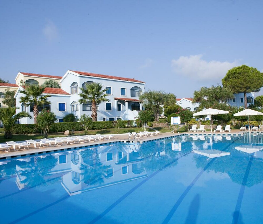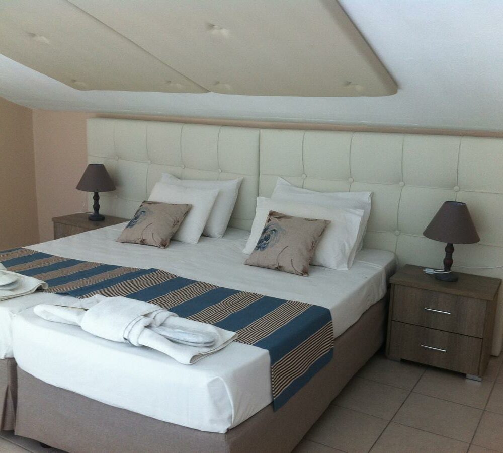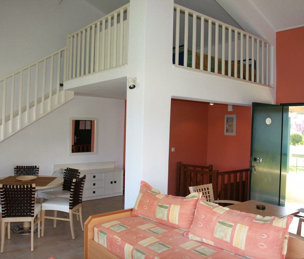 Вилла типа «Мезонет» с тремя спальнями (4-8 человек) (≈130 м2). Три спальни с односпальными кроватями, объединенная столовая и гостиная комната и мансарда с двумя односпальными кроватями. На всех виллах есть полностью оборудованная кухня.